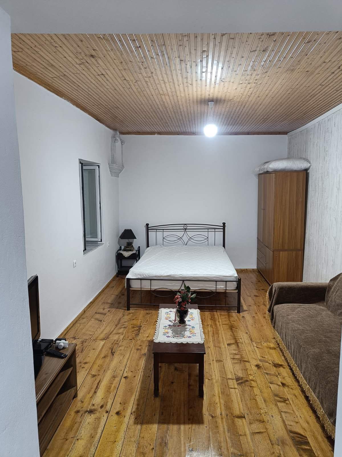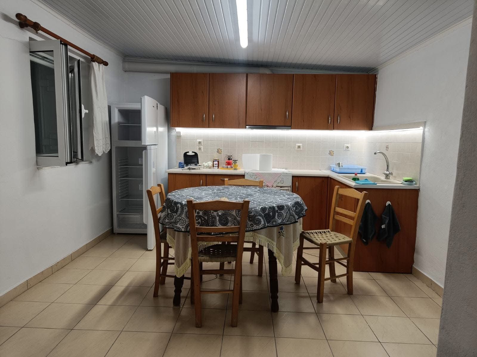 A 70 sq.m. rental home consisting of two spacious bedrooms with double beds and wardrobes, as well as a smaller room with a semi-double bed. It features a bathroom with a shower, washing machine, and full toiletries. The kitchen is fully equipped with a refrigerator, cooking stove, dining table, toaster, and a small gas burner with a briki for making traditional Greek coffee, along with all the necessary utensils for meal preparation. Additionally, coffee, tea, honey, toast bread, cheese and ham for toast, butter, and eggs are provided. Outdoors, there is a courtyard with a table and chairs, ideal for relaxing moments. Free Wi-Fi is available, and there is a Smart TV in the bedroom. Luggage transfer can also be arranged upon request.