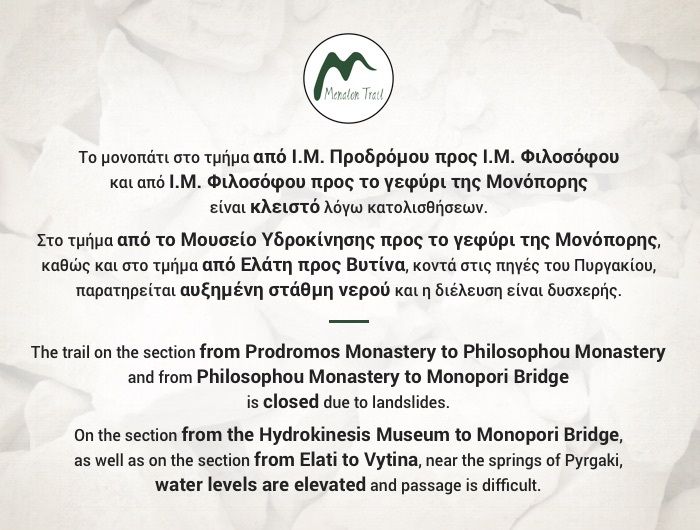 Our many-year experience, concerning transportations, guarantees you a safe and comfortable transport. Based in Dimitsana, we cover transportations from airports, ports and bus stations, with destinations being various locations around Menalon Mountain. We also take up luggage and passenger transportations, to and from the 8 stop spots, of the Menalon Trail (referring to the villages: Stemnitsa, Dimitsana, Zygovisti, Elati, Vytina, Nymfasia, Magouliana, Valtesiniko, Lagkadia).